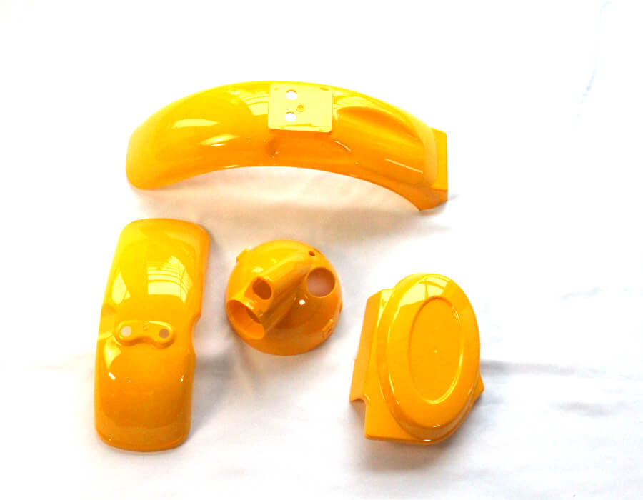 Monkey katesarja keltainen sisältää: etulokasuojan, takalokasuojan, sivuposken ja lampunkopan.