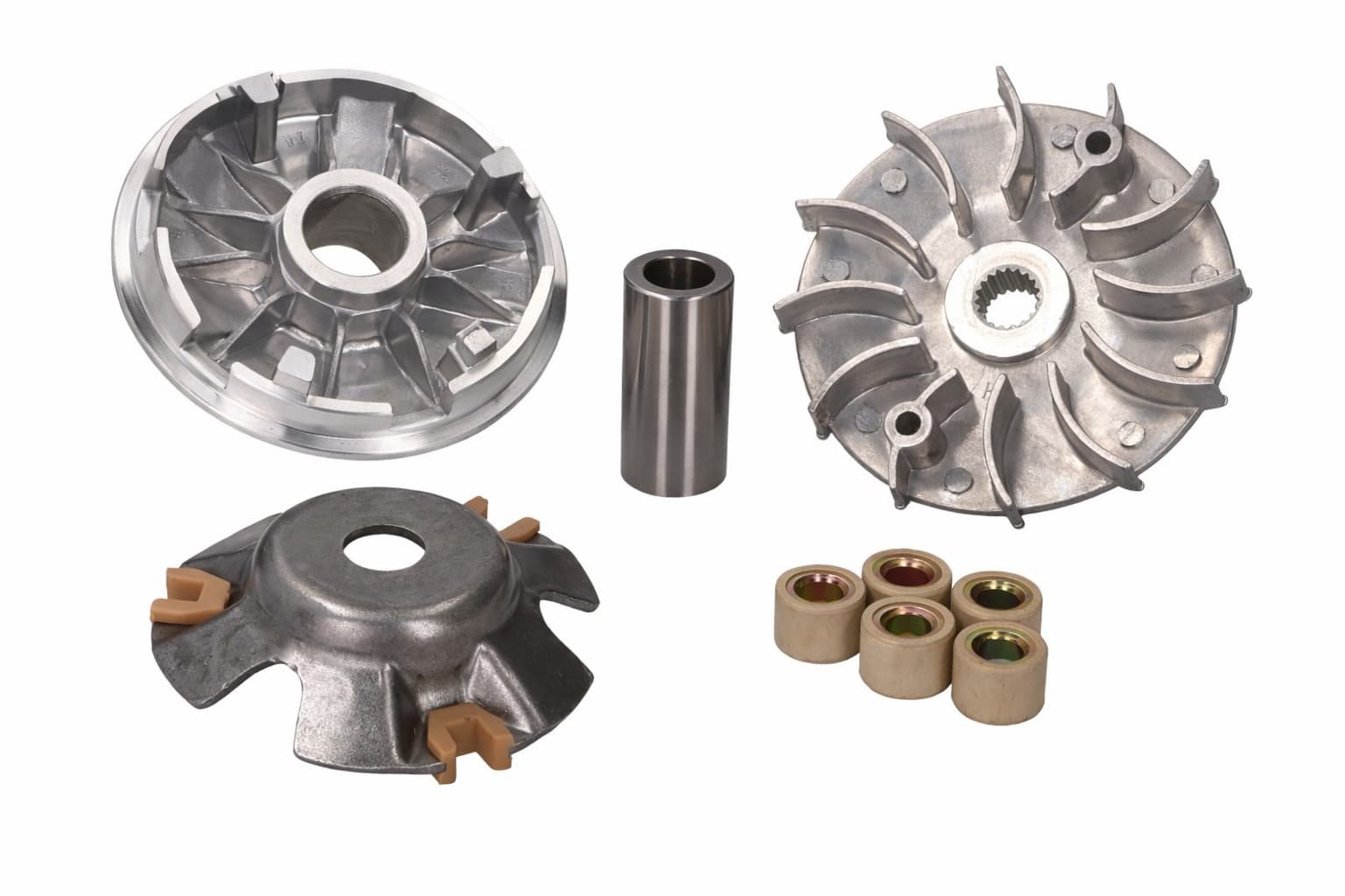 Laadukas variaattori GY6 125cc ja 150cc skoottereihin. Tämä kestävä variaattorisarja on suunniteltu kiinalaisiin GY6-moottoreihin (152QMI, 157QMI, 152QMJ, 157QMJ) ja tarjoaa luotettavan ratkaisun kuluneen alkuperäisosan tilalle. Erinomainen valinta, kun haluat parantaa skootterin kiihtyvyyttä, huippunopeutta ja ajomukavuutta.